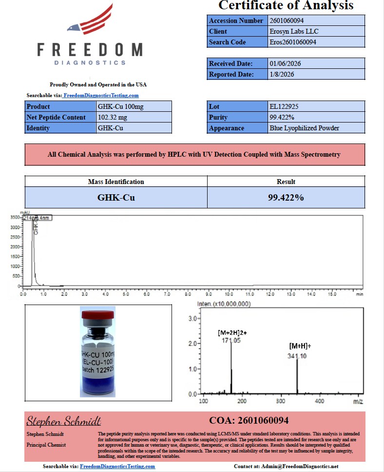GHK-Cu is a copper-binding synthetic tripeptide widely referenced in scientific literature for laboratory research involving peptide-metal interactions, molecular signaling pathways, and structure-function analysis.